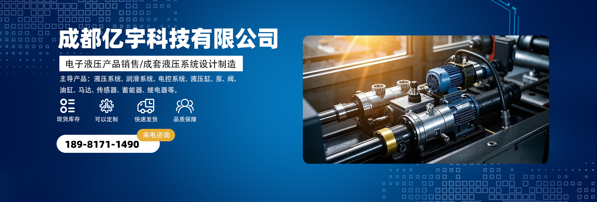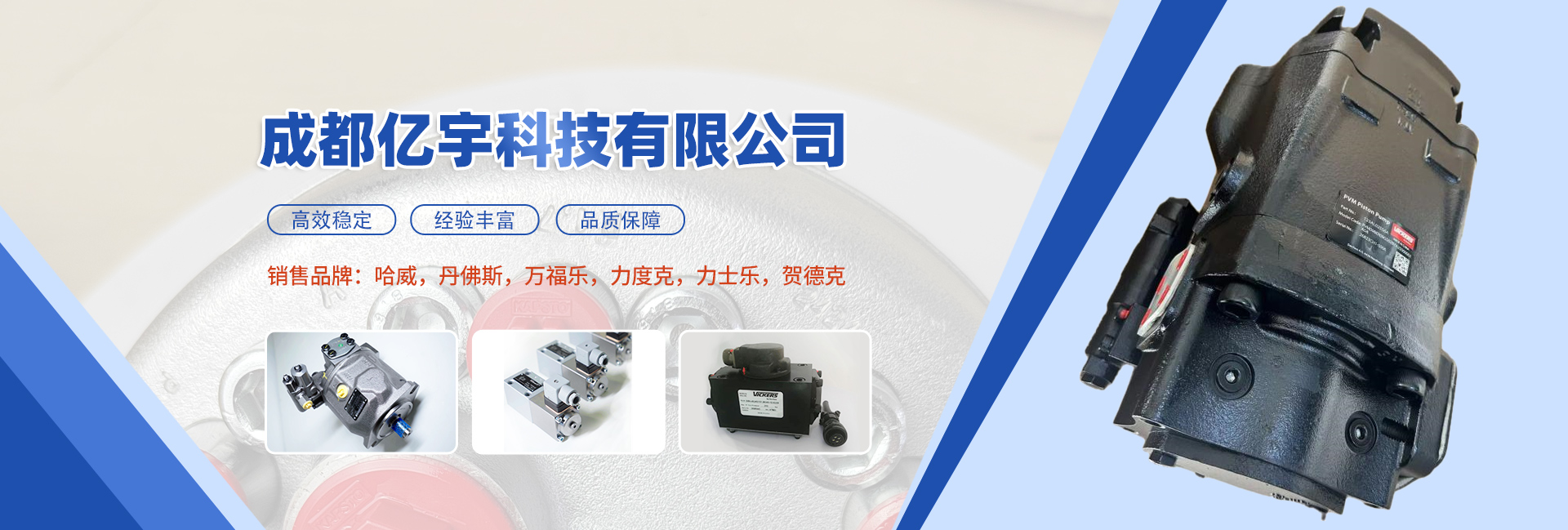 成都億宇科技有限公司是一家專(zhuān)業(yè)從事電子液壓產(chǎn)品銷(xiāo)售及成套液壓系統設計制造的高科技企業(yè)。 主導產(chǎn)品:液壓系統、潤滑系統、電控系統、液壓缸,泵,閥,油缸,馬達,接頭,管件,傳感器,蓄能器,繼電器,密封圈等。同時(shí)擁有熟悉國內外液壓機電產(chǎn)品的專(zhuān)業(yè)人員為您解決機械液壓方面的問(wèn)題,并匯集了一批在流體傳動(dòng)領(lǐng)域內具有豐富實(shí)踐經(jīng)驗的專(zhuān)業(yè)技術(shù)人才,致力于各種高品質(zhì)液壓產(chǎn)品及系統的研制工作。經(jīng)過(guò)我們不懈的努力發(fā)展和創(chuàng )新,已與眾多國內外供應商建立了良好的合作關(guān)系,在價(jià)格及供貨周期上均有較